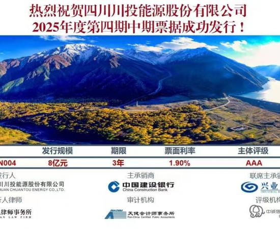 川投能源成功發(fā)行8億元中期票據(jù)